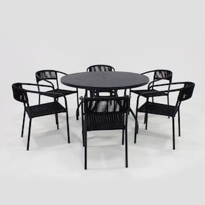 Jogo De Mesa Ripada com 6 Cadeiras Corda Náutica e Aluminio
