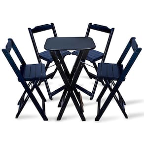 Jogo De Mesa Bistro Com 4 Cadeiras Dobravel - Pretoé ideal para bares, restaurantes, estabelecimentos, áreas de lazer e tambem para sua casa. Em madeira maciça, tornando-os resistentes e duráveis. Seu design permite que esse conjunto seja encaixado em qualquer ambiente, trazendo um toque a mais para seu estabelecimento. Além de sua durabilidade, o que lhe trará conforto para servir seus clientes. Por ser dobrável torna-se mais fácil guardar, manusear e limpar o produto.Atenção: EVITE USAR PRODUTOS ABRASIVOS E QUÍMICOS PARA LIMPEZA DO PRODUTO, aconselha-se o uso de pano umedecido para melhor conservação mantenha o produto fora de chuva e sol constantes.*imagens meramente ilustrativas*ç Medidas Mesa Bistrô: Tampo 54cm x 45cm Altura 98cmç Dimensões Cadeira Bistrô: Altura da cadeira aberta 95cm Altura da cadeira fechada 105cm Altura até o assento 61cm Largura 41,5cm Largura vão do assento 37,5cm Profundidade 43cm Profundidade do assento 32cmJogo de Mesa Bistro com 4 Cadeiras Dobravel - Preto
