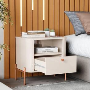 Acompanha 1 gavetas, 1 nicho, 4 pés em metal; Corrediças telescópicas.