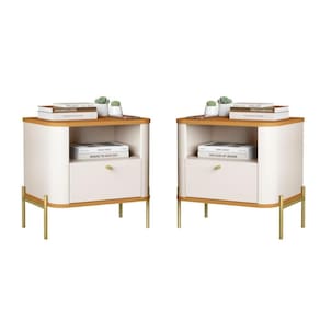 Jogo De Mesa De Cabeceira Bali Off White Nature Dourado - Branco