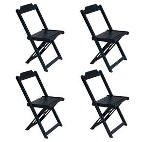Jogo de Mesa Dobrável 70x70 com 4 Cadeiras de Madeira Ideal para Bar e Restaurante Preto - Preto