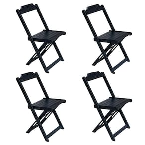 Jogo De Mesa Dobrável 70X70 Com 4 Cadeiras De Madeira Preto - Preto