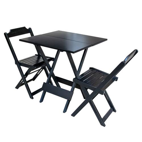Jogo De Mesa Dobravel Com 2 Cadeiras De Madeira 70x70 Pratica - Preto é ideal para bares, restaurantes, estabelecimentos, áreas de lazer e também para sua casa. Seu design permite que seja encaixado em qualquer ambiente, trazendo um toque a mais para seu estabelecimento. Além de sua durabilidade, o que lhe trará conforto para servir seus clientes. Por ser dobrável torna-se mais fácil guardar, manusear e limpar o produto. Atenção: EVITE USAR PRODUTOS ABRASIVOS E QUíMICOS PARA LIMPEZA DO PRODUTO, aconselha-se o uso de pano umedecido para melhor conservação; mantenha o produto fora de chuva e sol constantes. Dimensões: Medidas da Mesa: Altura: 76cm Largura: 70cm Comprimento: 70cm