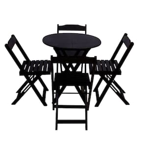 Jogo de Mesa Dobravel de Madeira 70cm Redondo com 4 Cadeiras Preto - Preto