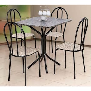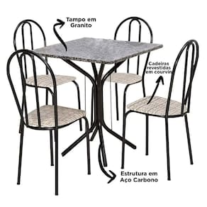 Na correria do dia a dia, uma mesa compacta com algumas cadeiras é sempre bem-vinda na cozinha, certo? Principalmente se são produtos de qualidade e que ofereçam é o caso do Jogo de Mesa 4 Cadeiras Thais da Artefamol! Pois a mesa e as cadeiras possuem estrutura em tubo de aço e o tampo da mesa é em granito, que garante maior durabilidade e resistência ao produto. Ah, já as Cadeiras são fabricadas com assento em espuma D11 e revestimento em courvin, agregando conforto e tubos de , deixando o produto mais sofisticado. Este jogo de mesa para cozinha tem tudo para impressionar e ser o centro de atenções do cômodo! Aproveite o ótimo custo-benefício e garanta uma cozinha moderna e funcional. Leve já!Dimensões dos Produtos (Largura x Altura x Profundidade) Mesa: 70 x 77 x 70 cm.Cadeira: 35 x 90 x 39 70 x 2 x 70 16 Kg.Características do ProdutoMaterial da Estrutura: Aço carbono / Tampo Suportado: Cadeiras: 100 Kg / Tampo da mesa: 30 kg.Densidade da Espuma: D11.Revestimento: Courvin.Acabamento: Pintura Epóxi a pó.Escala de Brilho: Pés: de Pé: Ponteiras plásticas.Quantidade de Lugares: 4 Lugares.Diferenciais:- Design moderno.- Cadeiras revestidas com tecido courvin.- Tampo da mesa de granito.Sistema de Montagem: Cavilhas / de Montagem: Sim.Complexidade da Montagem: Média.Volumes: 3 údo da Embalagem: 1 Mesa, 4 Cadeiras.Garantia do Fabricante: 90 dias contra de fabricação.Montagem: Recomendamos que seja feita por um .Recomendação de Limpeza: Utilize pano levemente úmido.Observações importantes- Produto para uso residencial em ambiente interno, não devendo ficar exposto diretamente ao sol, calor e umidades excessivas.- Pode haver alguma diferença de tonalidade entre a imagem e o produto real, por conta do tratamento de imagens e a calibração de cores do seu monitor.- As imagens são meramente ilustrativas, não acompanham objetos de decoração e eletrônicos.- Ao receber a mercadoria, o cliente deve verificar as condições da embalagem, caso haja alguma não assine o de .- Montagem, desmontagem e outras instalações serão de responsabilidade do cliente. Não nos responsabilizamos, no ato da , por subir escadas/elevadores ou pelo por guincho em apartamentos. Eventuais despesas são de responsabilidade do comprador.- Confira as dimensões do produto e certifique-se de que passará normalmente por supostos elevadores, portas, escadas e/ou corredores de sua residência.