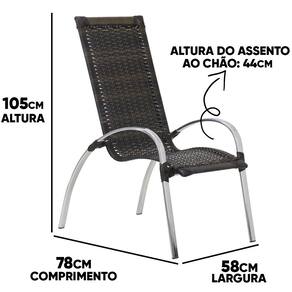 Cadeira Garden: - Altura total: 105 cm - Altura assento ao chão: 42 cm - Largura: 57 cm - Profundidade: 47 cm - Suporta até 180 kg
