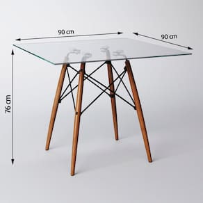 JOGO DE MESA EAMES TAMPO QUADRADO VIDRO 90CM 4 CADEIRAS PRETAS O Jogo de Mesa 4 Cadeiras Eames se destaca pelo design moderno e sofisticado. A Cadeira Eames é confeccionada em policarbonato, sua base é em Madeira maciça, o que confere total resistência e conforto, o tampo é confeccionado em vidro, sua base é em Madeira maciça. O Jogo de Mesa 4 Cadeiras Eames da vida ao ambiente além de combinar com todos os tipos e cores de móveis.