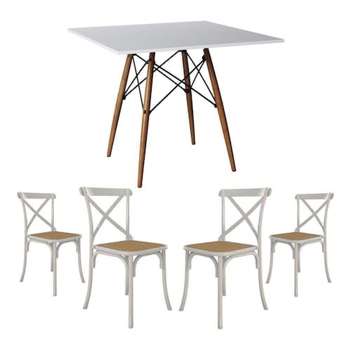 Jogo De Mesa Eiffel Quadrado Tampo De Madeira 90Cm Branco Com 4 Cadeiras Katrina Brancao Bege