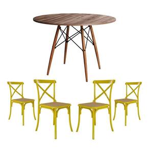 Jogo De Mesa Eiffel Redondo Tampo De Madeira 110cm Amêndoa Com 4 Cadeiras Katrina Amarela Assento Be