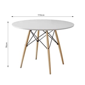 Jogo De Mesa Eiffel Redondo Tampo De Madeira 110cm Branco Com 4 Cadeiras Katrina em Aço Amarelo Assento BegA sua cozinha ou sala de jantar ficará completa com esse lindo Conjunto de Mesa e Cadeiras! Contendo um design de móveis moderno, elegante e com uma ousada combinação de cores, esse é um kit que certamente é uma solução que esbanja estilo, elegância e muito requinte.O conjunto tem em sua diversificada estrutura de materiais com altíssima qualidade, que proporciona muito mais resistência, mesmo com o passar dos anos, e com seus 4 assentos Katrina Aço é ideal para um jantar em família sem abrir mão do conforto. O Kit acompanha versatilidade e combina com vários tipos de decoração, o que dá mais praticidade em sua casa.Informações técnicas Conjunto:Conteúdo da Embalagem: 01 Mesa e 04 Cadeiras (Embalados Separadamente).Instruções/Cuidados: Limpar com pano seco ou levemente umedecido com água.Necessita de Montagem? Sim.Mesa:Modelo: Eiffel WoodTipo: RedondaCor do tampo: BrancoCor da base dos pés: Wood (Madeira)Material do tampo: MadeiraMaterial dos pés: MadeiraDimensões: Altura: 76 cm // Largura: 110 cm // Profundidade: 110 cmCadeiras:Modelo: KatrinaCor: Amalera e BegeMaterial da estrutura: Aço com Pintura E-PoxMaterial do assento: Espuma D14 com Revestimento em Corano.Dimensões: Altura: 90 cm // Largura: 50 cm // Profundidade: 55 cmJogo de Mesa Eiffel Redondo Tampo de Madeira 110cm Branco com 4 Cadeiras Katrina Amarela Assento Beg