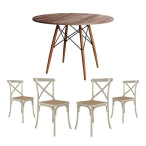 Jogo De Mesa Eiffel Redondo Tampo De Madeira 90cm Amêndoa Com 4 Cadeiras Katrina Off White Assento B