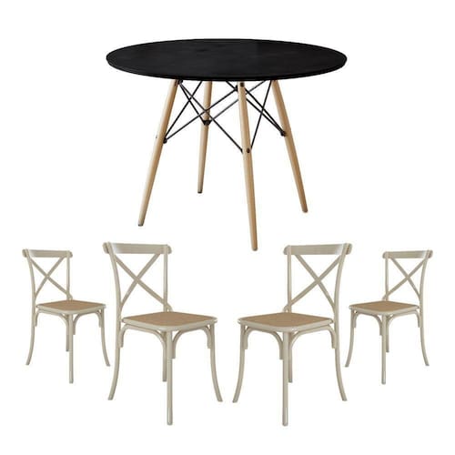 Jogo De Mesa Eiffel Redondo Tampo De Madeira 90cm Preto Com 4 Cadeiras Katrina Off White Assento Beg