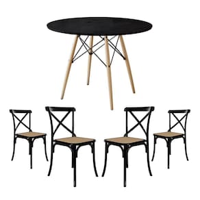 Jogo De Mesa Eiffel Redondo Tampo De Madeira 90cm Preto Com 4 Cadeiras Katrina Preto Assento Bege
