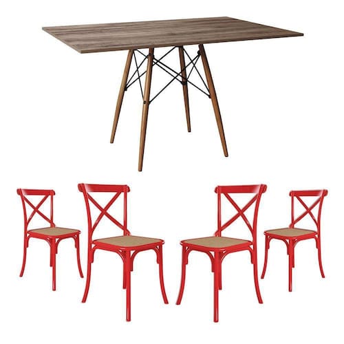 Jogo De Mesa Eiffel Retangular Tampo De Madeira 120x75cm Amêndoa Com 4 Cadeiras Katrina Vermelha Ass