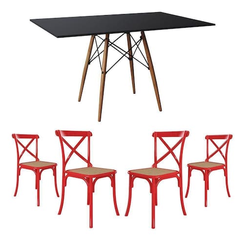 Jogo De Mesa Eiffel Retangular Tampo De Madeira 120x75cm Preto Com 4 Cadeiras Katrina Vermelha Assen