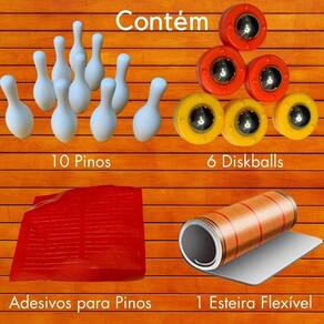 Contém: 1 esteira flexível, 10 pinos e 6 diskballs e Adesivos para pinos.