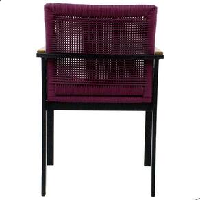 A mesa ripada em alumínio é a peça central, com um design clean e contemporâneo que se integra a qualquer estilo de decoração. As poltronas Amélia, com sua estrutura em corda náutica e braços em madeira, oferecem um toque de sofisticação e aconchego, convidando a relaxar e desfrutar da companhia de amigos e familiares.