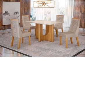 Jogo de Mesa Valdemóveis Dora 120x80cm com 4 Cadeiras - Cinamomo | Off White
