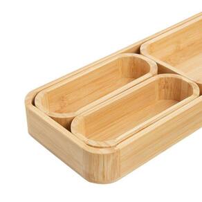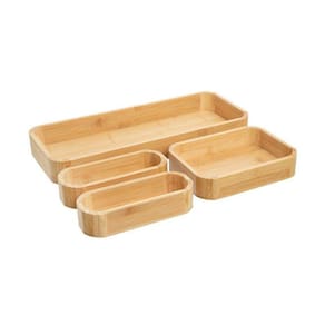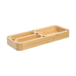 O Jogo de Organizador Alma Bambus 4 Peças é confeccionado 100% em bambu, material sustentável e que confere um estilo mais artesanal ao ambiente. Pode ser utilizado no banheiro para organizar produtos de beleza, na penteadeira, ou na bancada para apoiar pequenos recipientes.