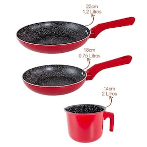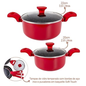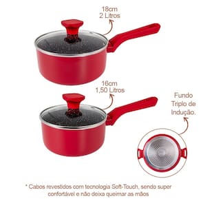 Jogo De Panela Ceramica Antiaderente Fundo Triplo Fogão Indução Mimo Style Pratic Cook Vermelha Conjunto 10 Peças Panelas Caçarola Frigideira Leiteira E Utensílios