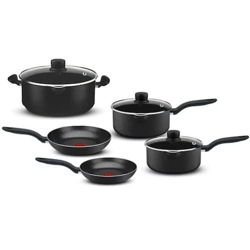 Sofisticação e praticidade na sua cozinha Feito em alumínio com cabo de baquelite, revestimento antiaderente e base Limpa Fácil. A tecnologia Thermo-Sinal avisa o ponto ideal para selar alimentos, tornando o preparo mais facilitado e seguro. As tampas são resistentes e ideais para o uso diário. Contém: 1 Caçarola 24cm - 4,6L 1 Panela 18cm - 1,9L 1 Panela 16cm - 1,4L 1 Frigideira 20cm - 0,9L 1 Frigideira 24cm - 1,4L Especificações: