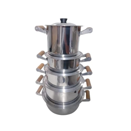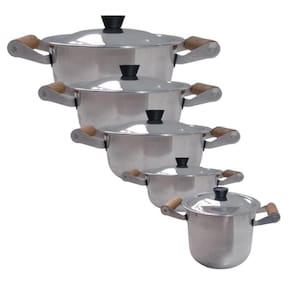 Jogo de Panela Aluminio Polido 5 Peças O Jogo de Panelas Alumínio Premium Polida 5 Peças é a combinação perfeita entre qualidade, sofisticação e funcionalidade para a sua cozinha. Composto por cinco panelas nas medidas Nº16, 18, 20, 22 e 24, esse conjunto atende a diferentes necessidades de preparo, desde pequenas porções até grandes receitas. Fabricadas em alumínio premium polido, as panelas garantem uma excelente distribuição de calor, proporcionando um cozimento rápido e uniforme. As tampas de alumínio ajudam a manter o calor e os sabores, enquanto os cabos em madeira oferecem maior conforto e segurança no manuseio. O acabamento polido confere um toque de elegância, tornando o conjunto não apenas funcional, mas também um item sofisticado para a sua cozinha. Ideal para quem valoriza qualidade e estilo, esse conjunto de panelas é perfeito para o uso diário e para ocasiões especiais. Marca: Não Informado
