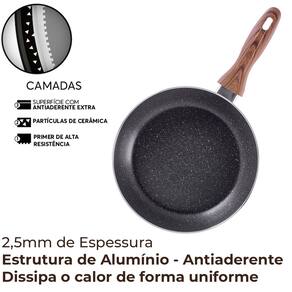 Características: Marca: Brinox Referência: 4774/104 e 4952/109 Modelo: Ceramic Life Material da Frigideira: Alumínio Material do Cabo: Baquelite Soft-Touch Revestimento Interno: Cerâmico Mineral Resist Cor: Granito Quantidade: 4 peças