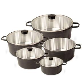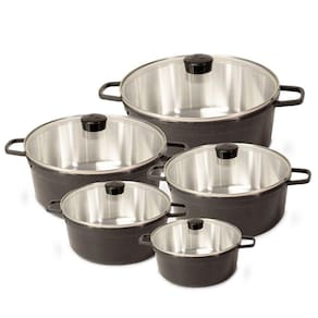 Jogo De Panela Fundida Alumínio Batido Caçarolas 5 Peças Tampa de Vidro Grafite