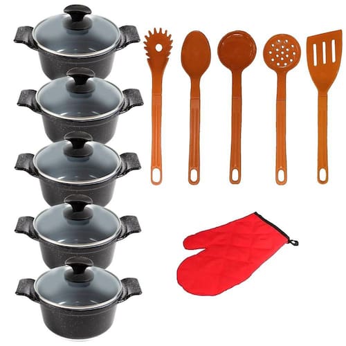 Jogo de Panela Preto Liso Cerâmica Talher Javali AAL 16A24Cm