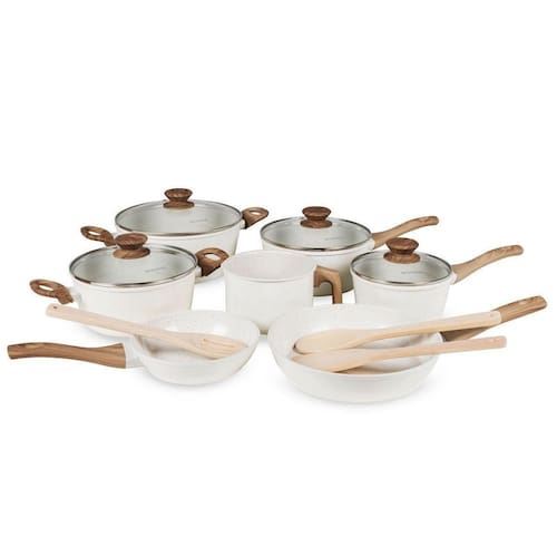 O Jogo de Panelas Brinovar Vanilla 7 Peças + 3 Utensílios combina design moderno, praticidade e resistência. Feitas em alumínio com revestimento cerâmico tripla camada, oferecem cozimento uniforme, alimentos sem grudar e limpeza rápida. Compatíveis com todos os fogões gás, elétrico, vitrocerâmico e indução , contam com tampas de vidro temperado e cabos antitérmicos para mais segurança. Saudáveis e livres de PFOA, preservam o sabor natural dos alimentos. Especificações Técnicas Material: Alumínio com revestimento cerâmico tripla camada antiaderente . Tampas: Vidro temperado com saída de vapor. Cabos, Alças e Pegadores: Baquelite antitérmico com revestimento soft touch Acessórios: 3 Colheres de pau de bambu Cor: Vanilla bege claro elegante . Compatibilidade: Fogões a gás, elétrico, vitrocerâmico e indução. Segurança: Livre de PFOA. : 90 dias Conteúdo da embalagem: 01 Panela: Capacidade: 1,3 Litros Diâmetro: 16 cm Altura: 8,5 cm 01 Panela: Capacidade: 2,25 Litros Diâmetro: 20 cm Altura: 9 cm 01 Caçarola: Capacidade: 2,25 Litros Diâmetro: 20 cm Altura: 9 cm 01 Caçarola: Capacidade: 3,8 Litros Diâmetro: 24 cm Altura: 10,5 cm 01 Frigideira: Capacidade: 0,75 Litros Diâmetro: 18 cm Altura: 4,3 cm 01 Frigideira: Capacidade: 1,6 Litros Diâmetro: 24 cm Altura: 4,9 cm 01 Leiteira: Capacidade útil: 1,5 Litros Diâmetro: 14 cm Altura: 10 cm 03 Colheres de Pau de Bambu: Tamanho: 6,5 30 cm Instruções de uso e conservação: Antes do primeiro uso, lave com esponja macia, enxágue e seque bem. Depois da primeira lavagem, faça a cura: unte a parte interna com óleo, aqueça em fogo baixo, deixe esfriar, descarte o conteúdo e lave novamente.