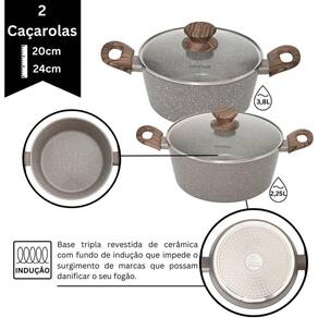 a linha cook da mimo style é a solução perfeita para preparar suas receitas favoritas com praticidade, funcionalidade e qualidade excepcionais. Composta por 10 peças, cada item do conjunto possui uma base tripla em alto relevo com fundo de indução, evitando o surgimento de marcas que possam danificar o seu fogão. Além disso, as panelas cook são adequadas para todos os tipos de fogões, incluindo elétricos, vitrocerâmicos, indução e a gás. Isso mesmo, você não precisa se preocupar em comprar panelas diferentes para cada tipo de fogão. A linha cook é extremamente funcional e saudável, possuindo 3 camadas de revestimento: 2 camadas de revestimento cerâmico e 1 camada resistente a alta temperatura. Esse material conduz o calor de forma uniforme, reduzindo o consumo de gás e energia, permitindo que você cozinhe os alimentos em fogo baixo ou médio. Além disso, as panelas são livres de metais pesados e elementos prejudiciais à saúde, sendo classificadas como a ótimo no inmetro. As panelas cook são multiuso e permitem que você prepare refeições completas com facilidade. Seus alimentos ficarão ainda mais saborosos, graças à estrutura de alumínio revestida em cerâmica, que mantém as refeições aquecidas por mais tempo. E para sua praticidade, o vidro temperado com saída para vapor permite que você acompanhe o cozimento de suas refeições, sem precisar abrir a tampa. As alças e cabos possuem revestimento soft-touch super macio, oferecendo segurança e conforto ao manusear as panelas. A higienização é simples e fácil, basta utilizar detergentes neutro e água morna, sem a necessidade de usar abrasivos ou palha de aço. Adquira agora o conjunto completo da linha cook e desfrute da qualidade e praticidade em sua cozinha. Composto por 2 caçarolas com tampa, 2 panelas com tampa, 2 frigideiras sem tampa, 1 panquequeira, 1 espátula vazada preta, 1 concha preta e 1 escumadeira preta. Não perca a oportunidade de ter uma cozinha mais funcional e prática. A mimo style é uma marca reconhecida por sua excelência em produtos para cozinha. Com anos de experiência no mercado, a mimo style se destaca por oferecer produtos de qualidade, design inovador e durabilidade. A marca busca sempre atender às necessidades dos clientes, proporcionando produtos que facilitam o dia a dia na cozinha. As panelas são adequadas para fogão de indução?