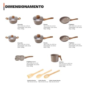 Distribuído por feheros shop Jogo de panelas 11 peças premium indução revestimento cerâmico Atenção As panelas com revestimento cerâmico oferecem propriedades antiaderentes, mas não são 100% antiaderentes. Para melhores resultados, recomenda-se o uso de pequenas quantidades de óleo ou . O revestimento cerâmico é uma alternativa saudável e ecológica, pois não libera substâncias tóxicas quando aquecido. - panelas premium com certificação inmetro nível a - não deixe a chama do fogão pegar nas laterais das panelas - leia atentamente a descrição e siga as recomendações do fabricante Informações do produto - versatilidade incrível: compatível com fogões a gás, elétrico, vitrocerâmico e de indução - durabilidade excepcional: revestimento cerâmico resistente a arranhões e abrasões - cozinha saudável: livre de pfoa e ptfe, ideal para quem busca mais saúde - design premium: acabamento moderno e elegante que facilita a limpeza - economia de tempo e energia: aquece rápido e distribui o calor de forma uniforme - conjunto completo: 11 peças para preparar diversas receitas com praticidade Especificações técnicas - compatível com fogões a gás, elétricos, vitrocerâmicos e de indução - revestimento cerâmico em 3 camadas com espessura de 4 mm - cabo de baquelite com revestimento soft touch, confortável e seguro - permite cozinhar com menos óleo graças ao revestimento antiaderente cerâmico - livre de pfoa e classificado como nível a no inmetro - fundo triplo com indução: estrutura em alumínio com cerâmica, economia de energia - composição de revestimento: 2 camadas cerâmicas + 1 camada resistente a alta temperatura Ficha técnica do produto - panela 16 cm: d 16 cm x a 8,5 cm c 1300 ml p 730 g - panela 20 cm: d 20 cm x a 9 cm c 2250 ml p 1050 g - caçarola 20 cm: d 20 cm x a 9 cm c 2250 ml p 1080 g - caçarola 22 cm: d 22 cm x a 10 cm c 3250 ml p 1350 g - leiteira 14 cm: d 14 cm x a 10,5 cm c 2000 ml p 350 g - frigideira 18 cm: d 18 cm x a 4 cm c 750 ml p 300 g - frigideira 22 cm: d 22 cm x a 4,7 cm c 1450 ml p 500 g - frigideira grill 3 em 1: 18 x 18 cm x a 2 cm p 600 g - espátula vazada de bambu: 30 x 6 x 1 cm - colher vazada de bambu: 30 x 6 x 1 cm - colher para arroz de bambu: 30 x 6 x 1 cm Importante: d= diâmetro, a= altura, c= capacidade, p= peso Antes do primeiro uso - lave com esponja macia e detergente - seque com pano de prato - aplique um pouco de óleo na parte interna - leve ao fogo baixo por 2 minutos - desligue o fogo e espere esfriar - lave novamente e seque Após o uso - evite choques térmicos. Deixe esfriar antes de lavar - lave à mão com água morna, esponja macia e detergente - enxágue e seque com pano macio - para alimentos queimados, deixe de molho e use materiais não abrasivos - não utilize utensílios metálicos, objetos afiados ou produtos abrasivos Itens inclusos no pacote - 01 panela 16 cm 1,3 l com tampa de vidro - 01 panela 20 cm 2,25 l com tampa de vidro - 01 caçarola 20 cm 2,25 l com tampa de vidro - 01 caçarola 22 cm 3,25 l com tampa de vidro - 01 leiteira 14 cm 2 l - 01 frigideira 18 cm 0,75 l - 01 frigideira 22 cm 1,45 l - 01 frigideira grill 3 em 1 - 01 espátula vazada de bambu - 01 colher vazada de bambu - 01 colher para arroz de bambu Todas as fotos são reais dos produtos. Qualquer dúvida, estamos à disposição 01- o produto pode ir ao forno R: não, estes modelos não são adequados para uso no forno devido ao cabo em baquelite. 02- o produto é novo Possui R: sim, o produto é novo e possui de 3 meses conforme as normas do fabricante. 03- é compatível com fogão de indução R: sim, possuem fundo especial que permite o uso em fogões de indução, além de fogões a gás, elétricos e vitrocerâmicos.
