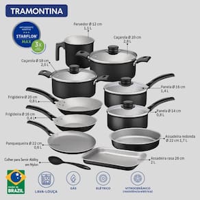 Jogo De Panelas 11 Peças Turim Preta Antiaderente Tramontina