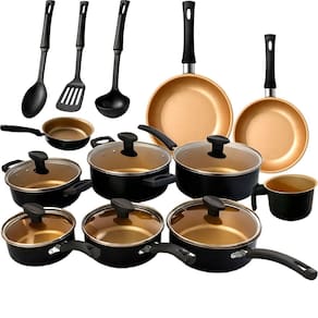 1 Panela 14 cm – 1,3 litros 1 Panela 16 cm – 1,4 litros 1 Panela 18 cm – 1,9 litros 1 Panela 20 cm – 2,6 litros 1 Caçarola 16 cm – 1,4 litros 1 Caçarola 20 cm - 2,6 litros 1 Fervedor 14 cm – 1,7 litros 1 Frigideira 14 cm – 0,4 litros 1 Frigideira 16 cm – 0,5 litros 1 Frigideira 18 cm – 0,6 litros 3 Talheres de Nylon