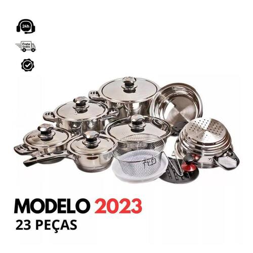 Não perca mais tempo e adquira agora mesmo o Jogo de Panelas com 19 Peças em Aço Inox Frankfurt.