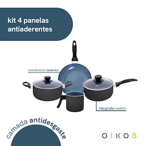 "conheça o jogo de panelas 4 pçs antiaderentes de cerâmica da coleção base da oikos!