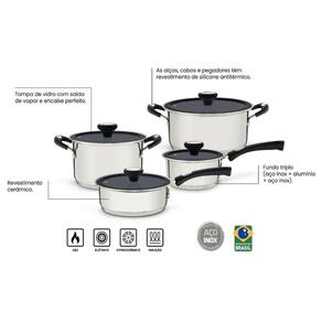 Jogo de Panelas Solar Ceramic 4 Peças em Aço Inox Fundo Triplo com Revestimento Interno Cerâmico Grafite Tramontina - Especificações Técnicas