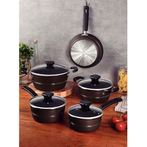 Jogo De Panelas 5pçs Sicília Tramontina 20499615 O jogo de panelas Tramontina Sicília em alumínio com revestimento interno e externo antiaderente Starflon Excellent avelã 5 peças vai garantir uma cozinha equipada com utensílios de alta qualidade e eficiência Suas peças são produzidas em alumínio com revestimento interno e externo de antiaderente Starflon Excellent, características que proporcionam o cozimento uniforme dos alimentos, evita que eles grudem em sua superfície e as torna mais duráveis. Suas panelas e caçarolas vem com tampa de vidro temperado com saída de vapor e borda de aço inox e seus cabos, alças e pegadores são em material antitérmico e garantem um manuseio muito mais confortável e seguro. Elas ainda são fáceis de limpar e podem ir à máquina de lavar louças, otimizando sua rotina na cozinha CONTÉM IMAGENS ILUSTRATIVAS