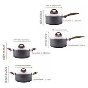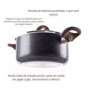 As panelas são feitas de alumínio com revestimento cerâmico antiaderente, que não libera metais pesados e elementos químicos no alimento. Elas também possuem tampas de vidro temperado com saída de vapor e alças e cabos em soft-touch antitérmico, que não esquentam e garantem um manuseio seguro e confortável. Além disso, elas são resistentes a altas temperaturas e podem ser usadas em fogões a gás, elétricos e vitrocerâmico e indução.