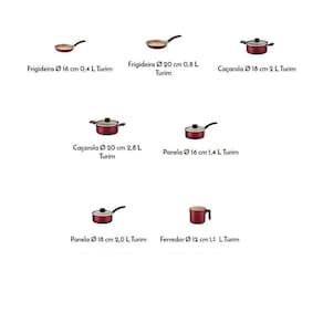 Jogo de Panelas 7Pçs Turim Verm Antiaderente Tramontina Leve o jogo de panelas Tramontina Turim em alumínio com revestimento interno e externo em antiaderente Starflon Max vermelho 7 peças para o seu dia a dia e garanta maior praticidade para o preparo das suas refeições. Produzido em alumínio com revestimento interno e externo em antiaderente Starflon Max, as peças garantem o cozimento rápido e uniforme dos alimentos, evitam que eles grudem em sua superfície, são muito fáceis de limpar e mais duráveis. Os cabos e alças são em material antitérmico e não aquecem, o que garante um manuseio muito mais seguro e confortável. Um jogo prático, que pode ir à máquina de lavar louças e que acompanha tampas de vidro temperado com bordas de aço inox que facilitam o preparo das suas receitas Conteúdo: 1- Frigideira16cm -0,4L 1- Frigideira 20cm -0,8L 1- Caçarola 18cm -2L 1- Caçarola 20cm -2,8L 1- Panela 16cm -1,4L 1- Panela 18cm -2L 1 -Fervedor 12cm -1,1L Jogo Contém: 7 Peças Marca: Não Informado