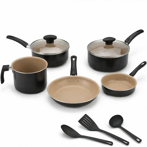 Jogo de panelas 8 peças teflon antiaderente Preto e Bege