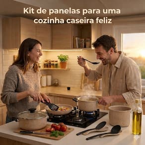 O conjunto inclui ainda uma panela de pressão de 2 litros, ideal para receitas rápidas, e utensílios em nylon, que não danificam o revestimento das panelas.
