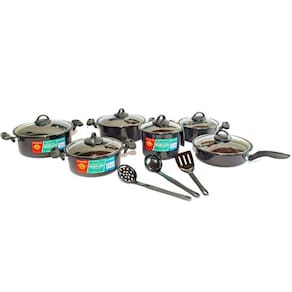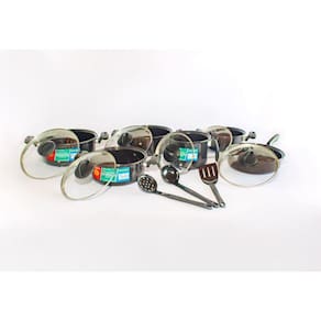 Especificações técnicas Marca: Esmeralda Modelo: Conjunto De Panelas Quantidade peças: 09 Material: Aço Ferromagnético Fundido a 850.C Revestimento: Cerâmica Cor: Preto Cabo: Baquelite Tipo de Uso: Dia a Dia Medida Externa (AxLxP):23.5 x 40.5 x 66 cm Peso: 7060g