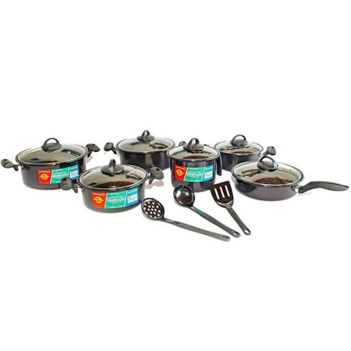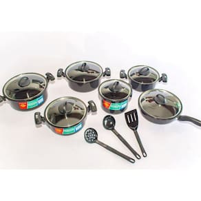 Itens inclusos 01 Caçarola com tampa de vidro 25cm 01 Caçarola com tampa de vidro 22cm 01 Frigideira com tampa de vidro 24cm 01 Panela com tampa de vidro 18cm 01 Panela com tampa de vidro 20cm 01 Leiteira com tampa de vidro 16cm 03 Utensílios