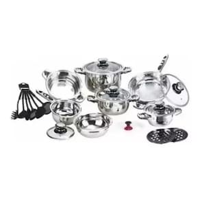 Jogo De Panelas - Aço Cirúrgico 23 Peças Apresentamos o incrível Jogo De Panelas - Aço Cirúrgico 23 Peças, a melhor opção para quem busca qualidade e praticidade na cozinha. Com peças em Aço Cirúrgico Alemão, este jogo de panelas é utilizado pelos melhores chefs de cozinha do mundo e possui certificado de mundial. Além disso, conta com revestimento antiaderente, facilitando o preparo dos alimentos e tornando a limpeza muito mais fácil. Produzido com aço cirúrgico 18/10 de alta gramatura, este conjunto de panelas garante a máxima qualidade e desempenho. Sua estrutura termo-eficiente distribui o calor de maneira uniforme, proporcionando um cozimento rápido e eficaz. O Jogo De Panelas - Aço Cirúrgico 23 Peças é composto por 12 peças essenciais para a sua cozinha. Inclui 3 caçarolas com tampa nos tamanhos 6.5 litros, 3.0 litros e 1.6 litros, uma frigideira de 3.0 litros, uma panela de 1.6 litros, uma panela vaporizadora, uma fritadeira, além de 11 utensílios para cozinha, como suporte de panelas em baquelite, conjunto de utensílios em nylon, botão de sucção, livro de receitas e cartão de certificação de fábrica. As tampas ainda possuem termômetro, facilitando o controle da temperatura durante o preparo dos alimentos. Com peso total de 11.2 kg, este conjunto de panelas é a escolha perfeita para quem busca qualidade, praticidade e design moderno na cozinha. Além disso, o Jogo De Panelas - Aço Cirúrgico 23 Peças é fabricado por uma marca renomada, conhecida por sua excelência e tradição na produção de utensílios de cozinha. Adquira agora mesmo o Jogo De Panelas - Aço Cirúrgico 23 Peças e desfrute de uma experiência culinária única. Com de 12 meses contra defeitos de fabricação, enviamos para todo o Brasil. Qual é o material das panelas? R: As panelas do Jogo De Panelas - Aço Cirúrgico 23 Peças são feitas de aço cirúrgico 18/10 de alta gramatura. 2. Quantas camadas de cerâmica as panelas possuem? R: As panelas possuem 11 camadas de cerâmica, garantindo maior durabilidade e resistência. 3. As panelas possuem revestimento antiaderente? R: Sim, as panelas possuem revestimento antiaderente, facilitando o preparo dos alimentos e tornando a limpeza mais fácil. 4. As tampas das panelas possuem termômetro? R: Sim, as tampas das panelas possuem termômetro, facilitando o controle da temperatura durante o preparo dos alimentos. 5. O conjunto de panelas acompanha utensílios de cozinha? R: Sim, o Jogo De Panelas - Aço Cirúrgico 23 Peças acompanha 11 utensílios para cozinha, como suporte de panelas em baquelite, conjunto de utensílios em nylon, botão de sucção, livro de receitas e cartão de certificação de fábrica.