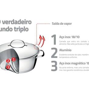 O fundo triplo distribui uniformemente o calor, não sendo necessário o fogo alto.