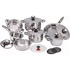 Jogo de panelas alemã - 23 pçs - anti-aderente fogão indução Jogo de panelas em aço inox com qualidade internacional peças em aço inoxusada pelos melhores chefes de cozinha do mundo. Super luxuosa, para pessoas de extremo bom gosto. Garantia e procedência. Características do produto:23 peças tampas são contadas como peças aço inóx 18/10 e vidro temperado nas tampastampas com termostato externo para melhor controle do seu prato. Produto 100% originaljogo de panelas 12 peças01 - 1 panela 6. 5 litros medindo 24cmx14cm com tampa de vidro02 - 1 panela 3. 0 litros medindo 20cmx10cm com tampa de vidro03 - 1 panela 1. 6 litros medindo 16cmx08cm com tampa de vidro04 - 1 frigideira 3. 0 litros medindo 24cmx6. 5cm com tampa de vidro05 - 1 panela 1. 6 litros medindo 16cmx09cm com tampa de vidro06 - 1 panela vaporizadora medindo 20cmx10cm sem tampa 07 - 1 cesta inox fritadeira medindo 18cme ainda mais 10 dez utensílios para sua cozinha:08 - 02 bakelite suporte de panelas 09 - 01 conjunto de utensílios nylon 6 peças 10 - 2 botões de sucçãoTodas as tampas são de vidro e possuem termômetroPanelas possuem 09 nove camadas de proteção em aço inoxidável, ligas de alumínio, alumínio puro, aço inox cirúrgico e ligas de carbono. Produto é antiaderente. 'camadas de granito, sensíveis a esponjas de aço'. Não recomendada para fogão a lenha ou fogão industrial em chama alta. Em caso de calor excessivo pode destemperar amarelar como qualquer produto mal uso . Recomendado uso em fogões de indução vitro cerâmica , elétrico e a gás. Importante: não recomendado uso de esponjas de aço para higienização interna ou externa pode arranhar e danificar . Não recomendada em fogão industrial fogo alto , fogão a lenha e nem raspagens com utensílios perfurocortantes no fundohorário de funcionamento, segunda a sexta de 09;00 ás 18;00sábado 09:00 ás 13:00. Postamos a sua compra com total agilidade, enviamos a mercadoria imediatamente após a confirmação da compra. Atenção tire todas as suas duvidas, atenderemos com todo prazer. Marca: inox Linha: 23pçs Modelo: inox Quantidade de pecas: 23 Materiais: luvas Com revestimento antiaderente: sim Pecas incluidas: 23 peças Marca: Nakazaki