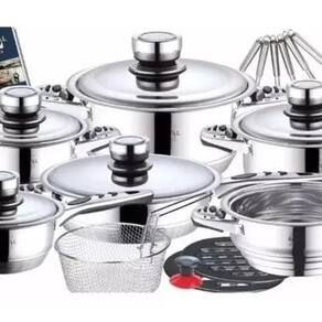 Jogo de panelas alemã aço cirúrgico 23 peças 9 camadas Contém : 1 unidade Panela tampa de vidro e tampa de aço, enviado de acordo disponibilidade do . Jogo de panelas alemã aço cirúrgico inoxidável 23 peças Melhor panela do mundo, peças em aço cirúrgico alemã. Certificado de mundial, Utilizado pelos melhores chefes de cozinha do mundo. Tem e acabou de chegar no brasil. Oportunidade de compra agora pra voce que quer ter uma comida de boa qualidade com a melhor panela do mundo. Enviamos para todo brasil. Características: 23 peças 09 camadas de cerâmica Aço cirúrgico 18/10 gramatura termostato de 1 ano pelo fabricante Jogo de panelas 12 peças 01 - 1 caçarola 5.0 litros medindo 24cmx14cm com tampa 02 - 1 caçarola 3.0 litros medindo 20cmx10cm com tampa 03 - 1 caçarola 1.6 litros medindo 16cmx08cm com tampa 04 - 1 frigideira 3.0 litros medindo 24cmx6.5cm com tampa 05 - 1 panela 1.6 litros medindo 16cmx09cm com tampa 06 - 1 panela vaporizadora medindo 20cmx10cm 07 - 1 fritadeira medindo 18cm Mais, 11 utensílios para cozinha 08 - 02 bakelite suporte de panelas 09 - 01 conjunto de utensílios nylon 6 peças 10 - 1 botão sucção Tampas com termômetro. Caixa totalmente lacrada. Peso: 11.2kg. A não cobre peças danificadas pelo uso. Atenção: Tire todas as suas dúvidas, atenderemos com imenso prazer. Perguntas e respostas do vendedor: 3 meses Marca: Não Informado