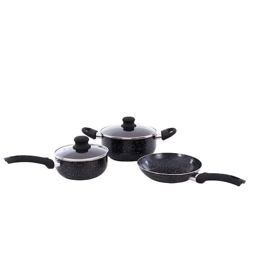 Prepare receitas incríveis com o conjunto que une praticidade, design e durabilidade! Projetado para otimizar seu tempo e elevar o sabor dos seus pratos, este conjunto é a escolha inteligente para cozinheiros de todos os níveis. -Ideal para uma variedade de pratos, o conjunto de 3 peças é perfeito para o uso diário. - Adequado para fogões a gás, elétricos e vitrocerâmicos, oferecendo praticidade e eficiência em diferentes tipos de preparação. -Perfeita para ensopados, caldos e pratos de cozimento lento. Sua profundidade e calor uniforme garantem sabores ricos e texturas perfeitas. Especificações Técnicas: - Material:Aluminio, Vidro e Baquelite - Dimensões da panela: 20cm (DIÂMETRO) x 9cm (ALTURA) - Dimensões da caçarola: 16cm (DIÂMETRO) x 7cm (ALTURA) - Dimensões da frigideira: 20cm (DIÂMETRO) x 4cm (ALTURA) - Cor: Preto - Antiaderente Itens Inclusos: - 01x Caçarola com tampa - 01x Frigideira - 01x Panela com tampa