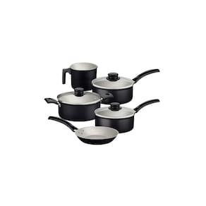 Corpo de alumínio com espessura que proporciona cozimento rápido e uniforme.Revestimento interno e externo de antiaderente Starflon Max que não gruda, é fácil de limpar, mais durável e não é prejudicial à saúde, pois é livre de PFOA.Tampas de vidro temperado com bordas de aço inox.Cabos, alças de baquelite antitérmico e pegadores de nylon que oferecem segurança durante o manuseio.Podem ir à máquina de lavar louças facilitando seu dia a dia.Pode ser utilizada nos fogões: gás, elétrico e vitrocerâmico - resistência elétrica.
